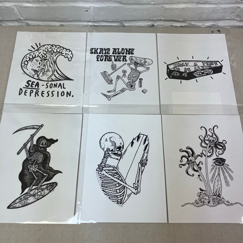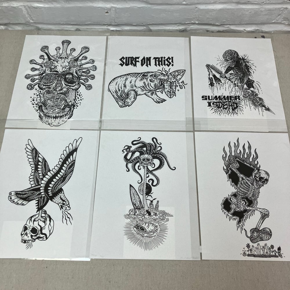 Limited Edition 8.5”x11” Assorted Black And White Art Prints. Each Comes Signed, Dated And Titled. Free Stickers Included. All Sales Are Final!